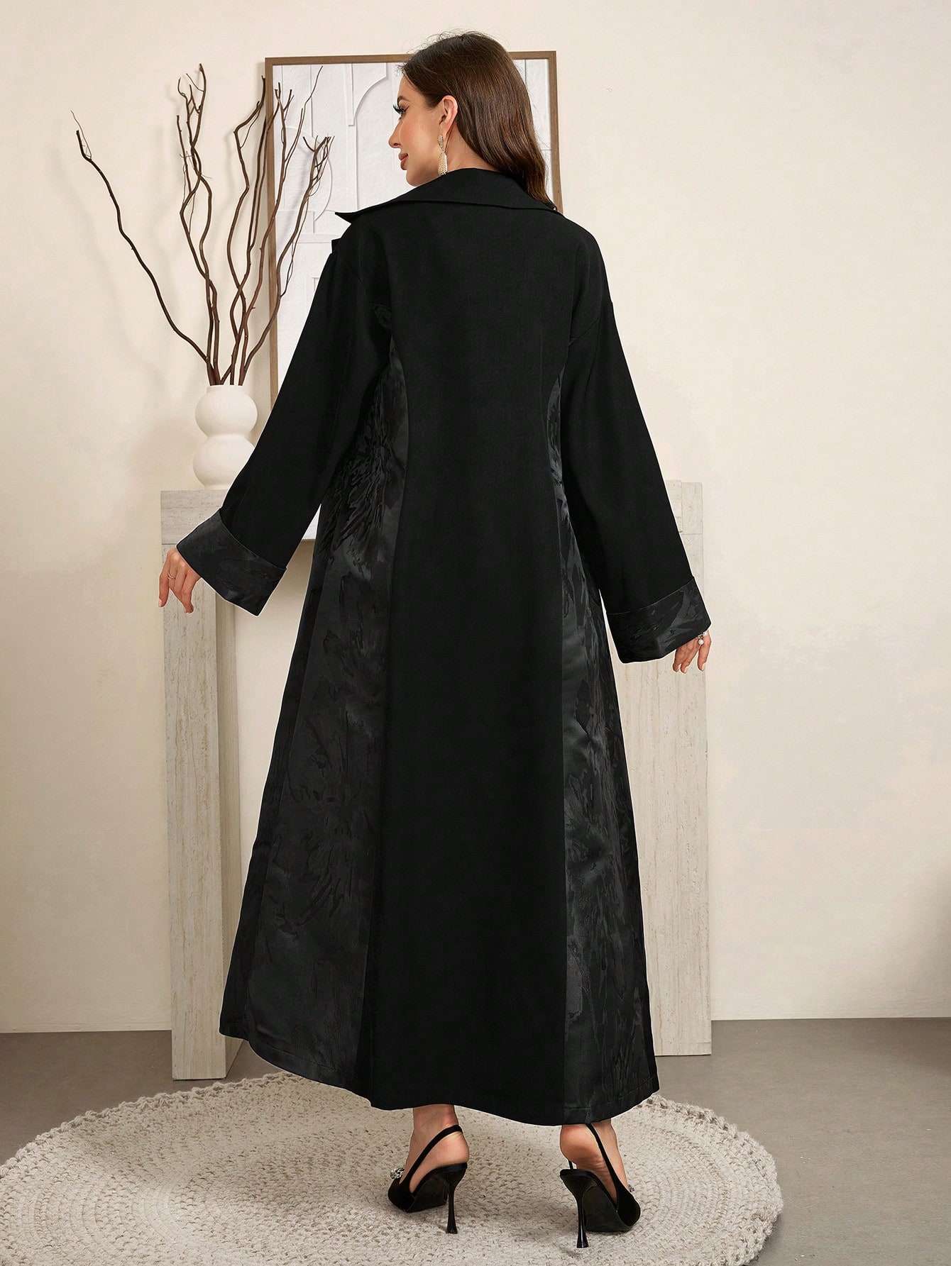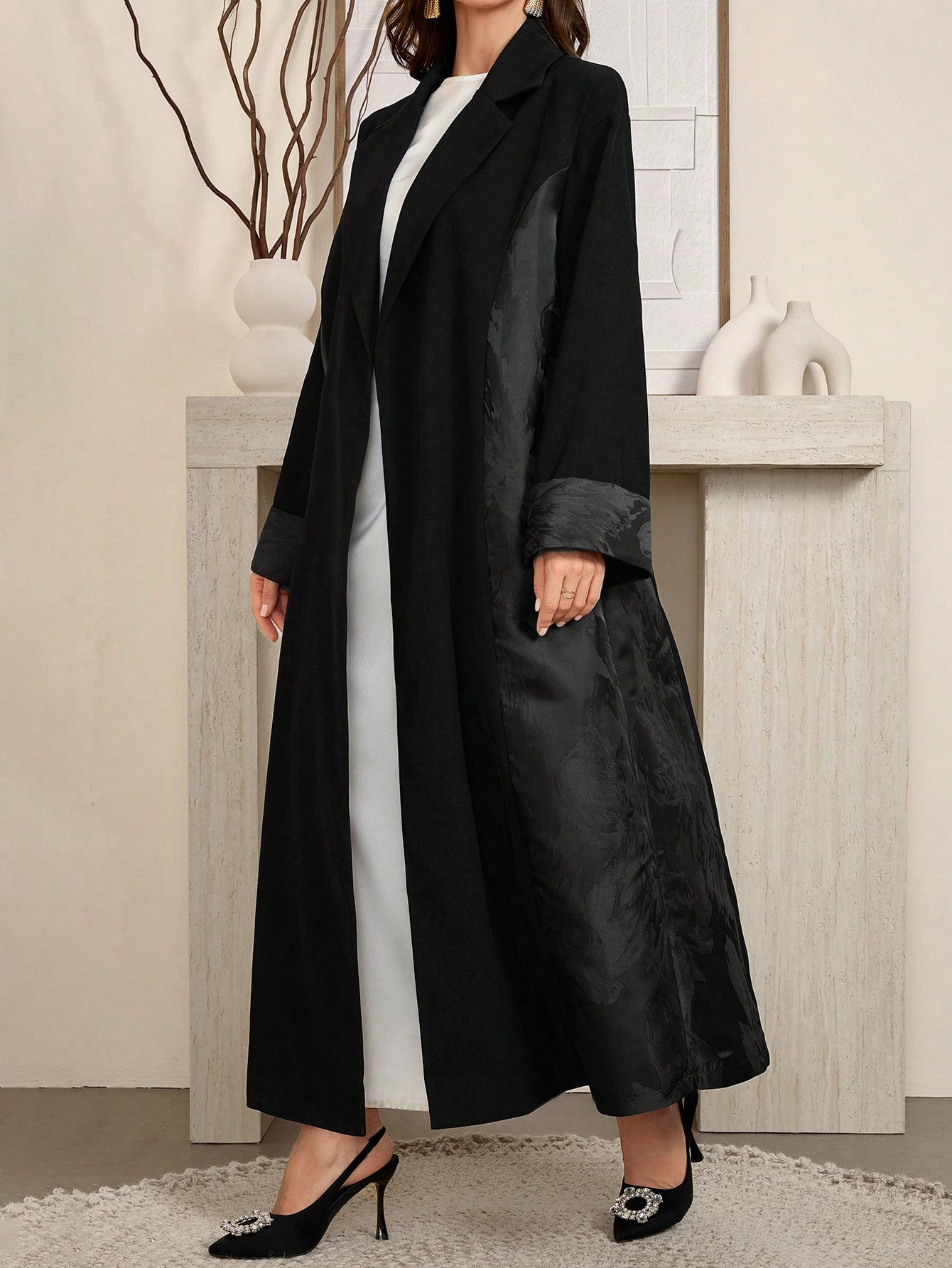 تألقي بفخامة هذه العباية الكلاسيكية باللون الأسود تصميم راقٍ يجمع بين البساطة والرقي، بقصة مستقيمة وانسيابية تعكس الذوق العصري، مع ياقة رسمية أنيقة. أما الأكمام الواسعة بتفاصيلها المميزة واللمسات الجانبية بنقوش خفيفة، فهي سر جمال التصميم وتفرده احصلي عليها من متجر abayaglam